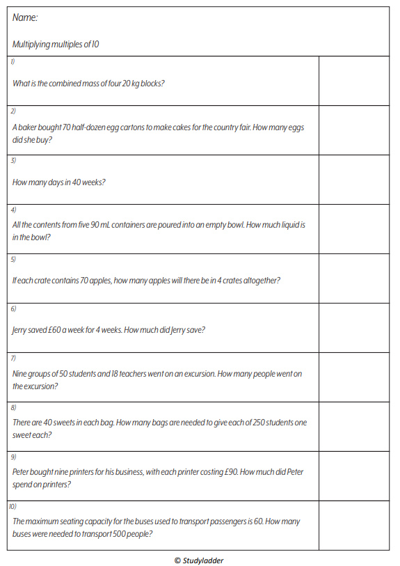 Multiplying multiples of 10 (problem solving)