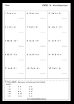 Samples: Short multiplication (missing number). 25% of a number. 10% off a number. Mixed operations (e.g. 80 x 5 + 29).