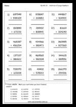Samples: Balancing equations Addition of larger numbers. Two step problem solving (addition and subtraction).