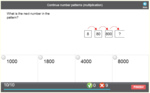 Samples: Continue number patterns. Rules defining number patterns. Continue number patterns (multiplication).